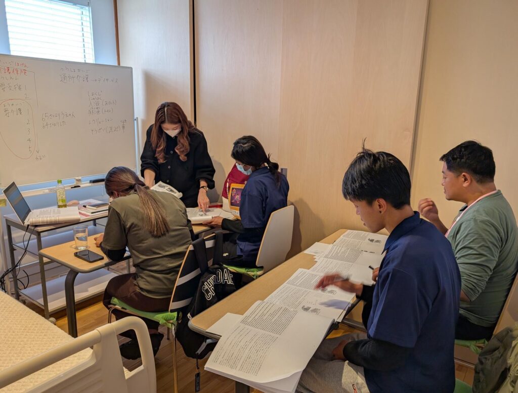 本研修は、日本語を母語としない学習者が、介護の基礎知識や専門用語を表面的に覚えるのではなく、現場で使える理解として身につけることを目指して設計されています。特に重視しているのは、日本社会や文化に根付いた介護理念や制度の学びです。また、漢字にふりがなを付けるだけでは届きにくい、介護の概念や状況判断に関わる理解にまで踏み込みます。