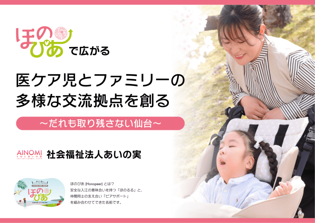 『ほのぴあ』は、仙台市と社会福祉法人あいの実が協働し、医療的ケア児・者、重症心身障害児・者の家族に向けた相談・交流・情報発信の基盤整備に取り組む事業として、令和7年度に実施されました。