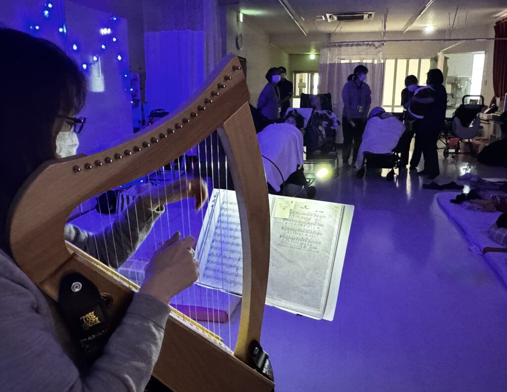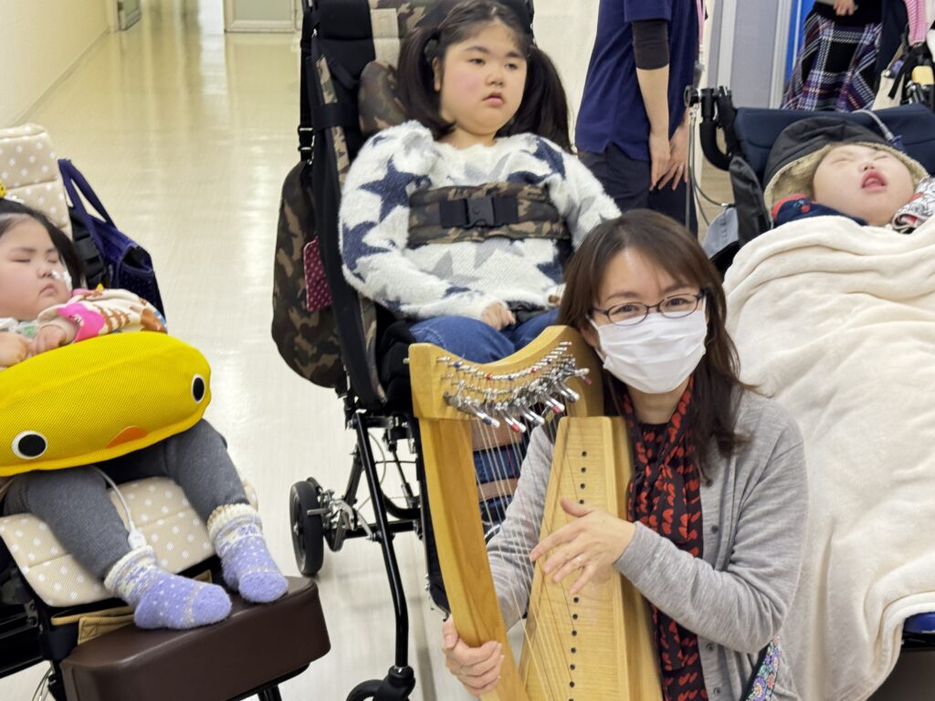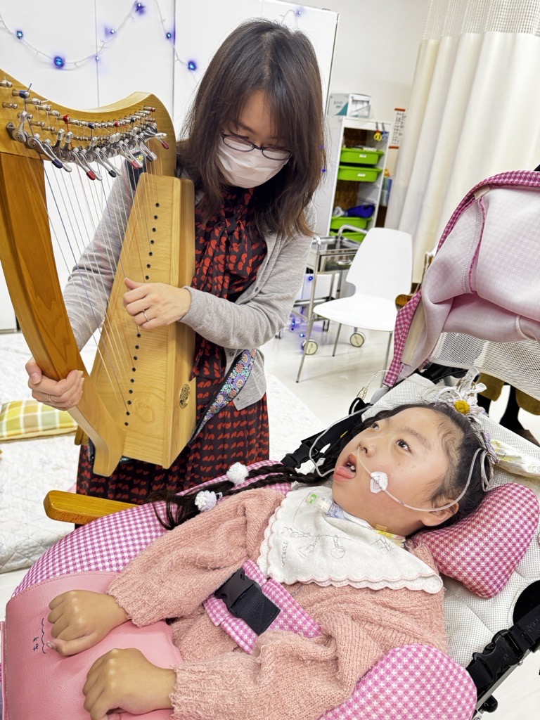 ベッドサイドでの訪問ハープ奏者・曽我あかね氏による